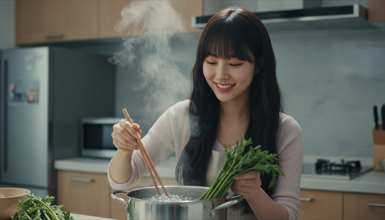 머위를 흐르는 물에 깨끗이 씻은 뒤, 끓는 물에 소금을 약간 넣고 1~2분간 데쳐냅니다. 너무 오래 데치면 물러지므로 주의하세요. 데친 즉시 찬물에 담가 식히고, 잎자루 끝부분에서 껍질을 잡아당겨 쭉 벗겨냅니다. 이 과정이 쓴맛을 줄이고 식감을 살리는 핵심입니다.